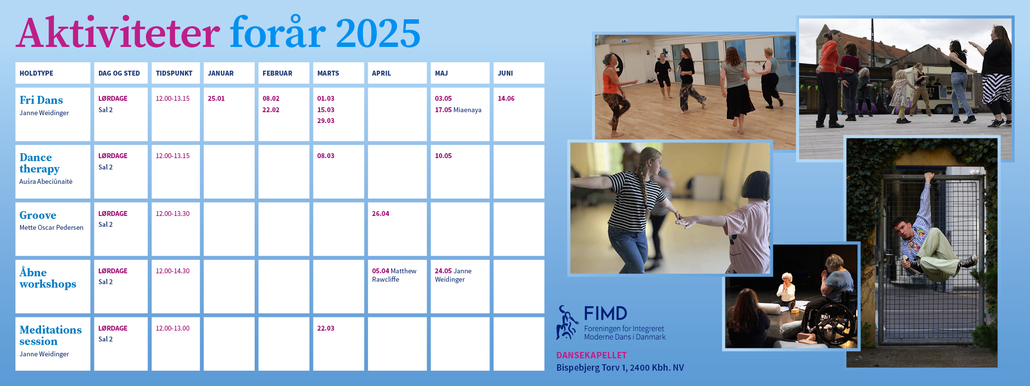 Find os på Dansekapellet, Københavns Danse- og Bevægelseshus, Bispebjerg Torv 1, 2400 København NV.